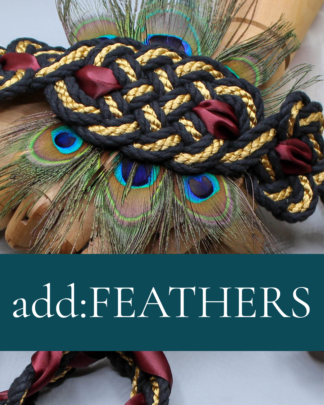 Add Peacock or Pheasant feathers to your handfasting cord. Feathers will usually be attached at the end of the braid unless agreed otherwise with our team in a consultation or chat