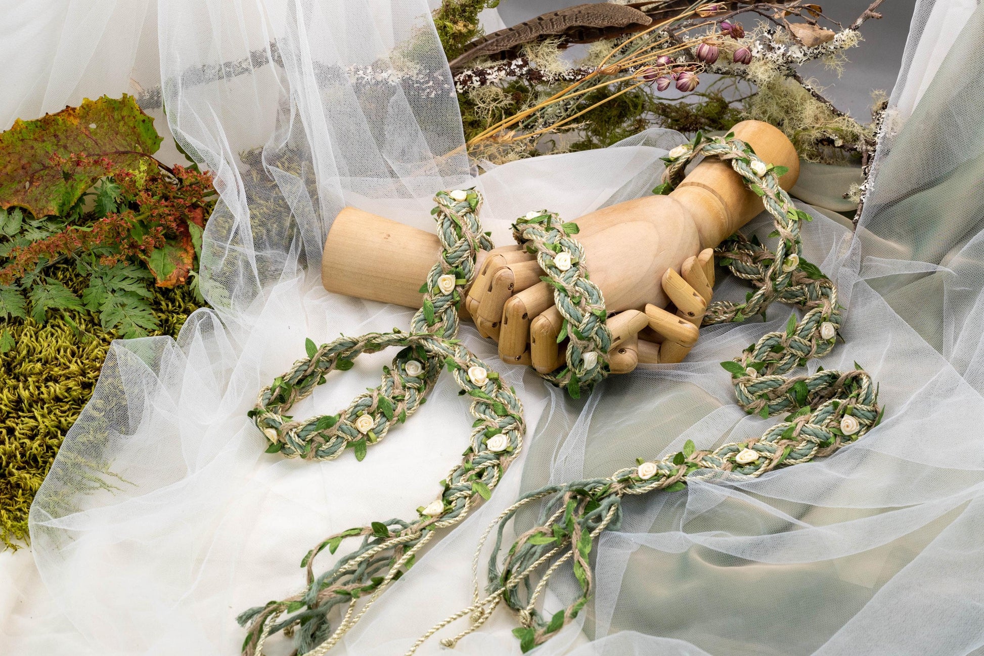 This braid can be used either for a center knot tie or an infinity tie. Braids can be used as companion cords to our more elaborate designs (for those who want to use several handfasting cords) or as standalone pieces.