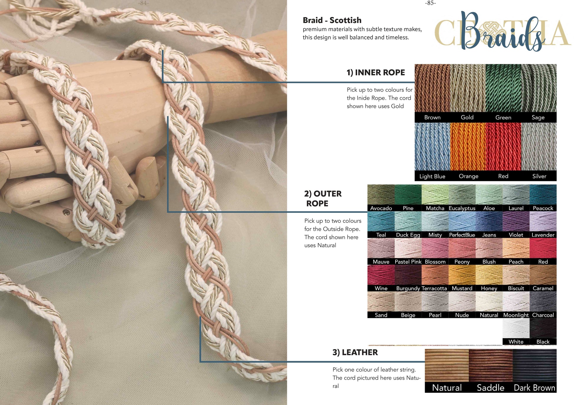Features: extra wide satin ribbon can replace the lace running through the centre of the cord. Choose your preferred option from the colour chart