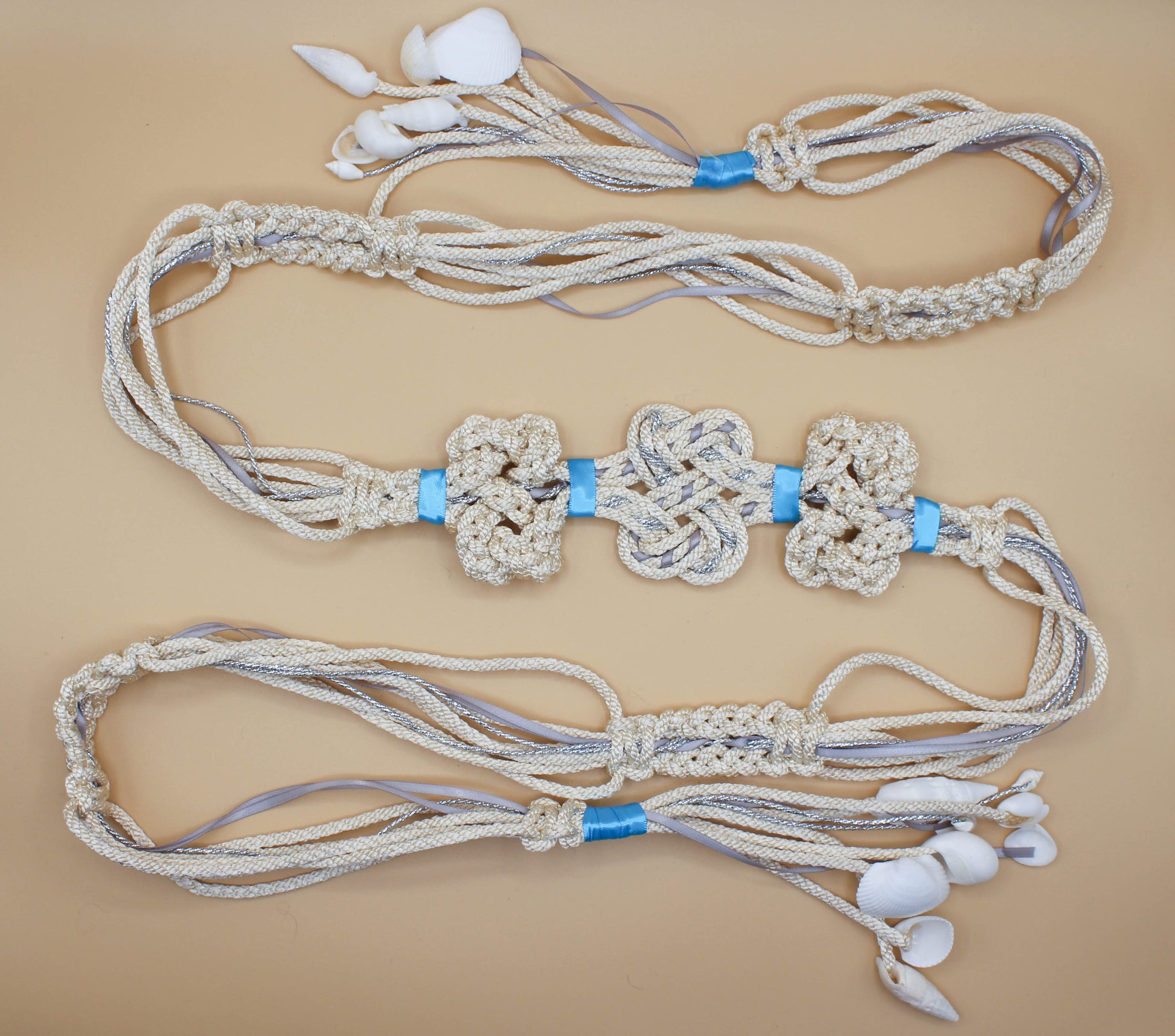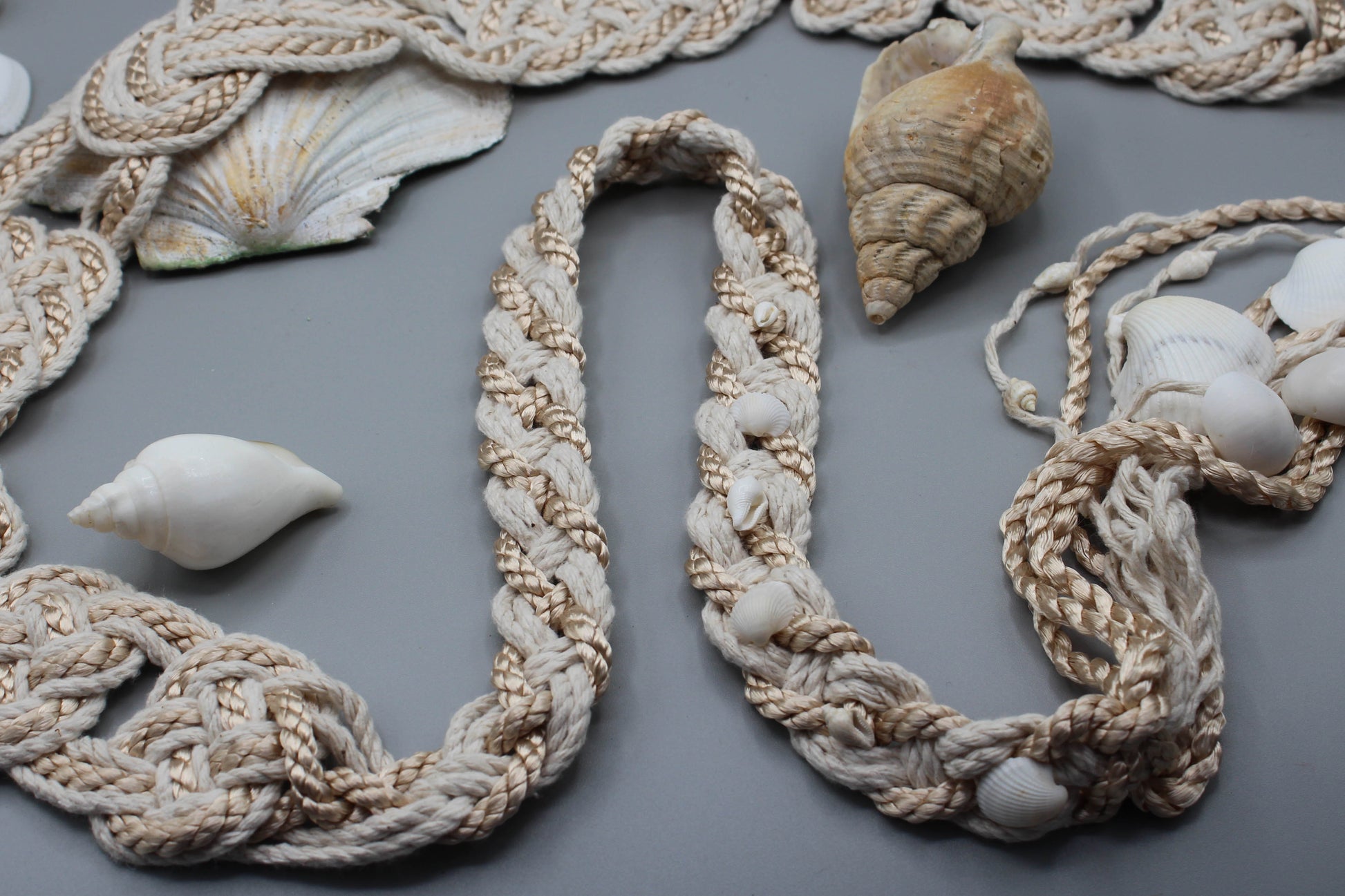 Seashells are typically added to the ends of the rope strands and along the bottom of the braid