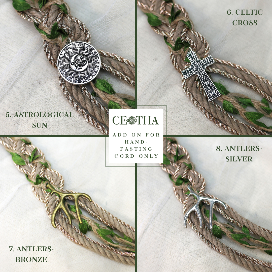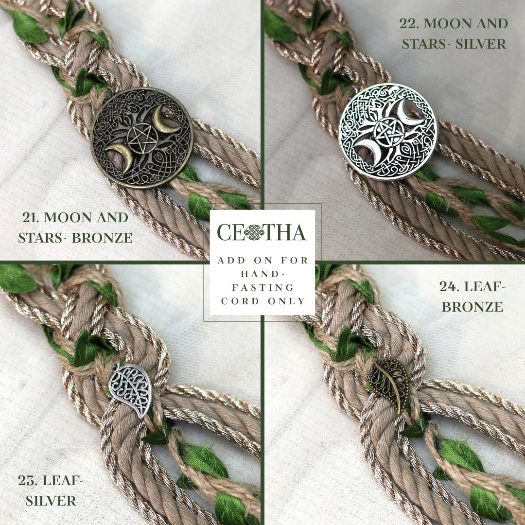 Elevate your handfasting ceremony with our subtle decorative charms. Each charm carries a unique symbol, reflecting your special journey together. Gently attached to your handfasting cord, these charms add a touch of visual and personal charm to your ceremony. Make your special day even more enchanting with our understated decorative charms.