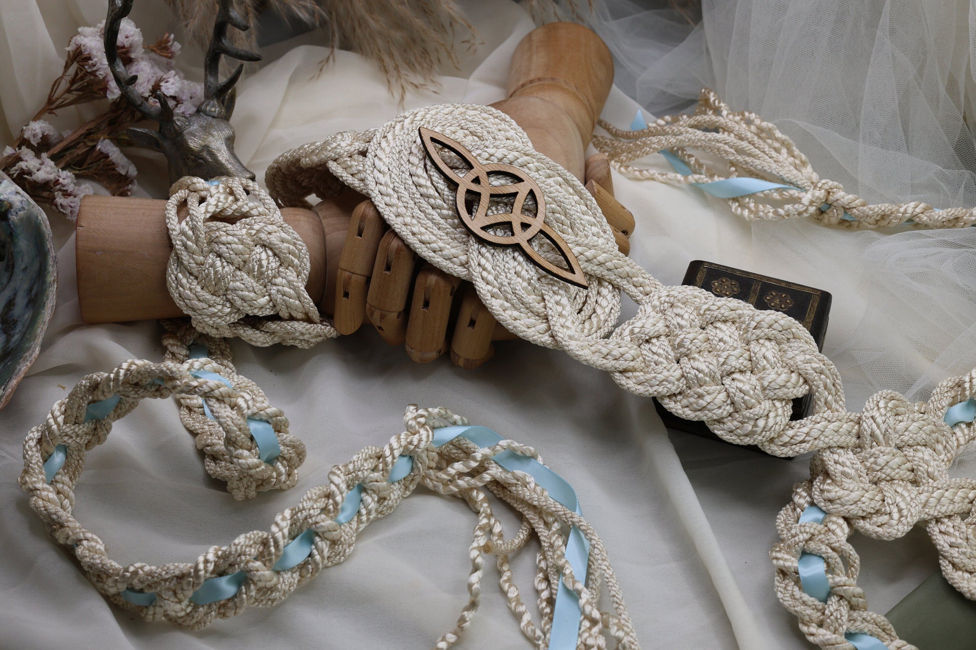 This artisanal handfasting cord features a string of Nine Celtic Knots.