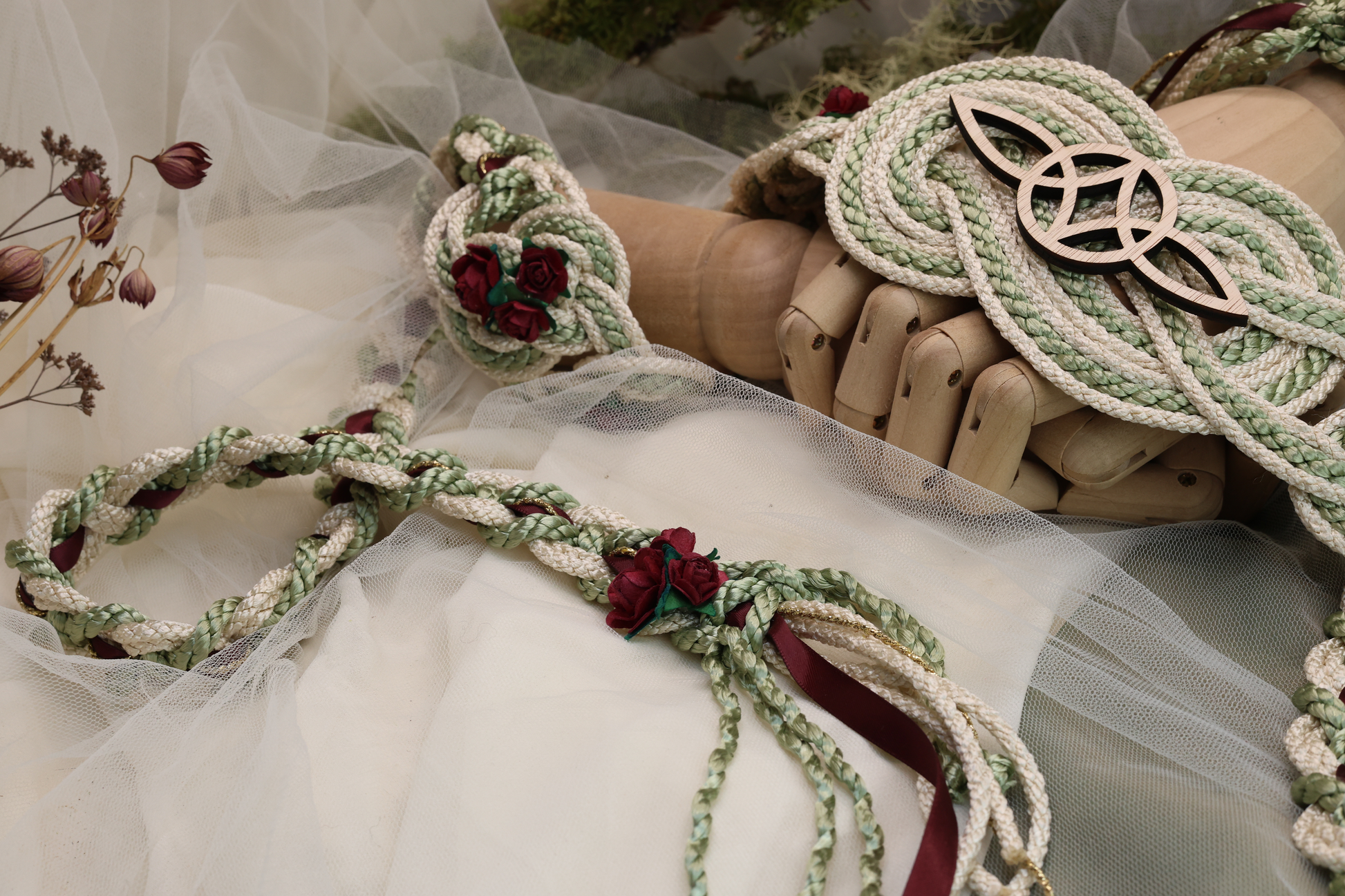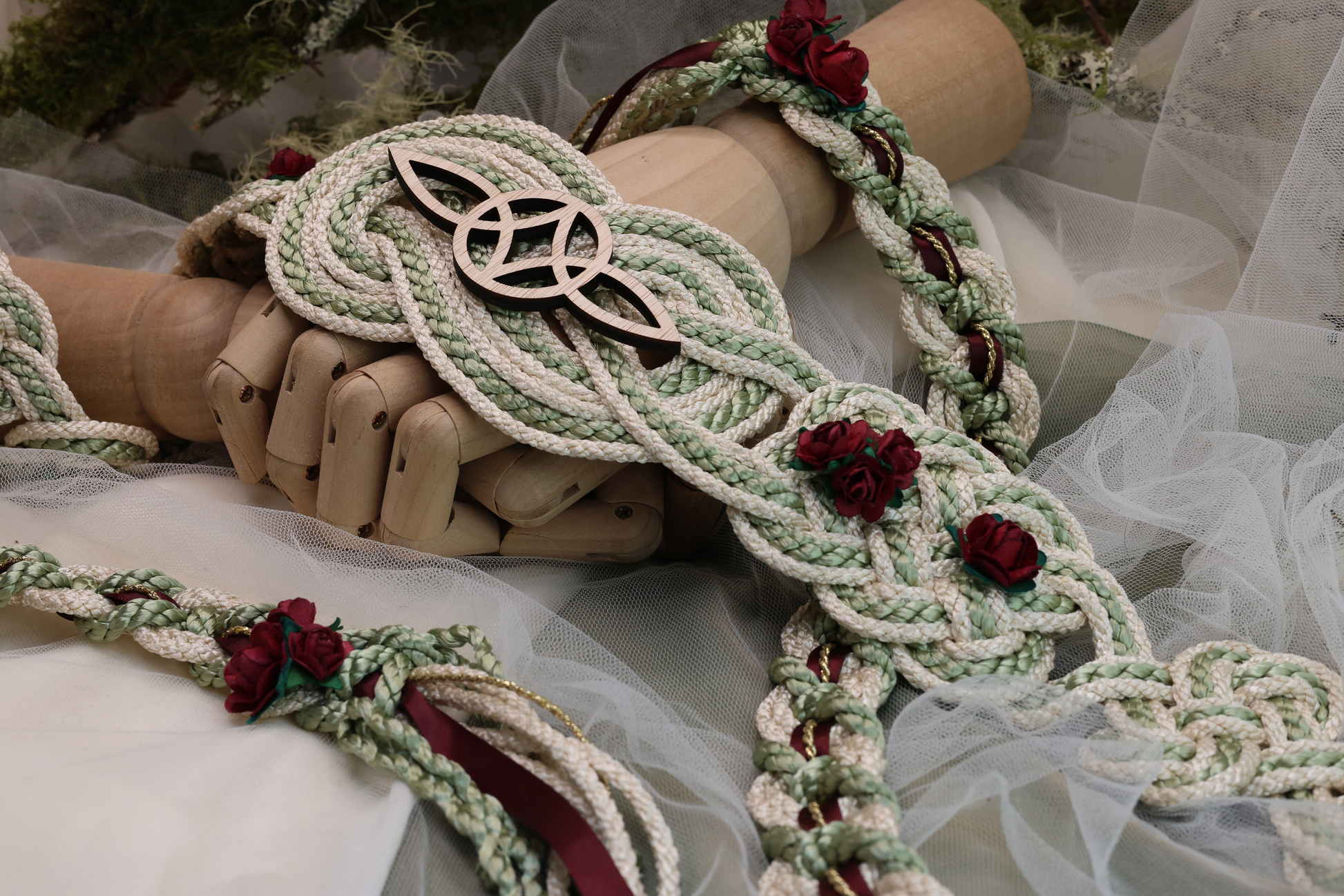 Literally the origin of the term “tying the knot”, handfasting cords are part of the Pagan wedding tradition. However, they are also often used in humanist, non-denominational, or Christian weddings. There is no right or wrong way to do a handfasting. You can take this beautiful tradition and adapt it to your ceremony in whatever way works best for you.