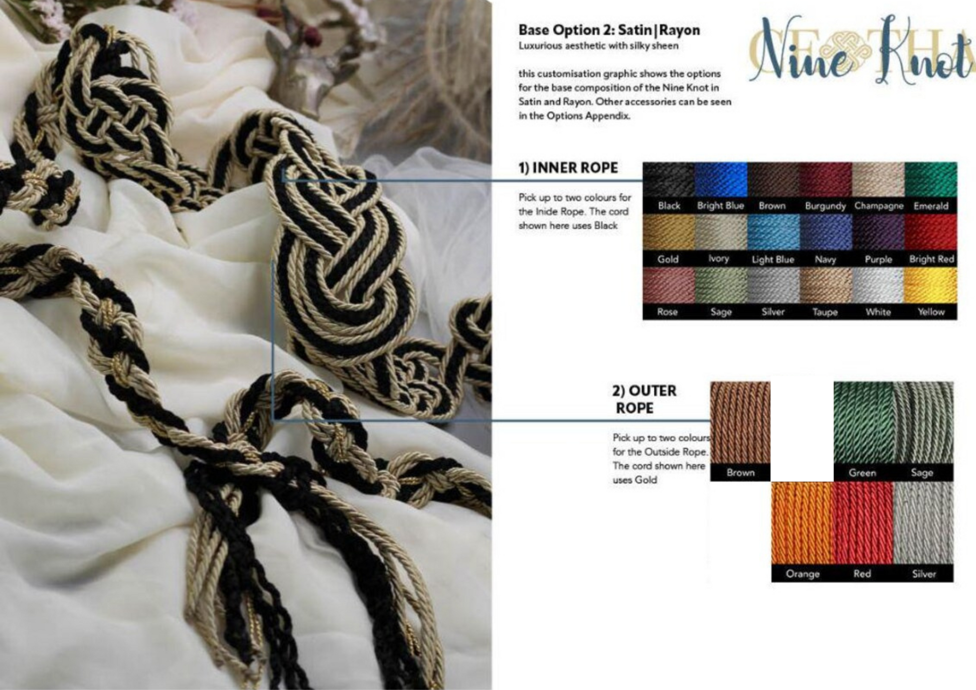 This design always comes with leafy vine. The other base colours can be customised below. Please be aware that the customisation guide shown in the gallery is for the Center knot version of this cord but you are still purchasing the Infinity Tie design.